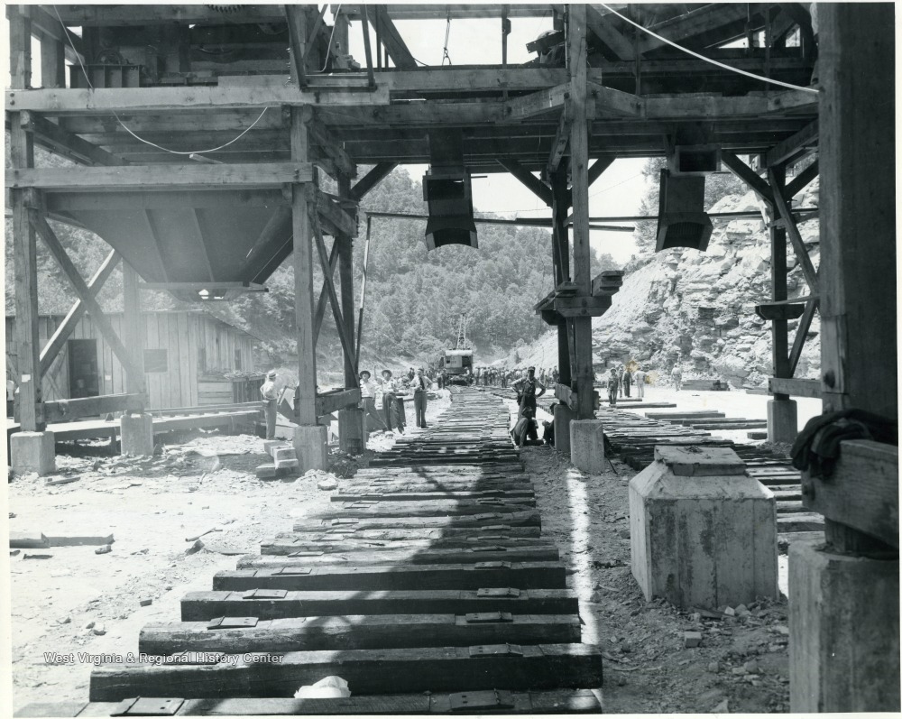 - Construction of Coal Conveyor and Tipple - Railroad Tracks being Laid Down