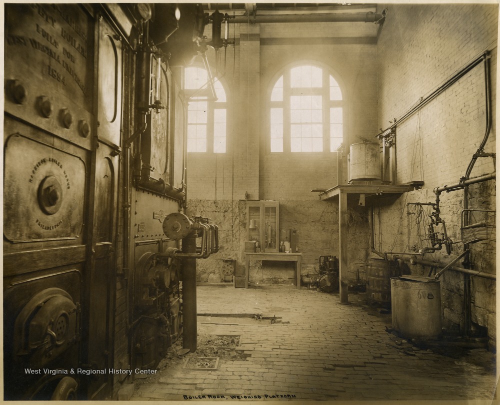 - View of Boiler Room and Weighing Platform, Mechanical Hall, West Virginia University