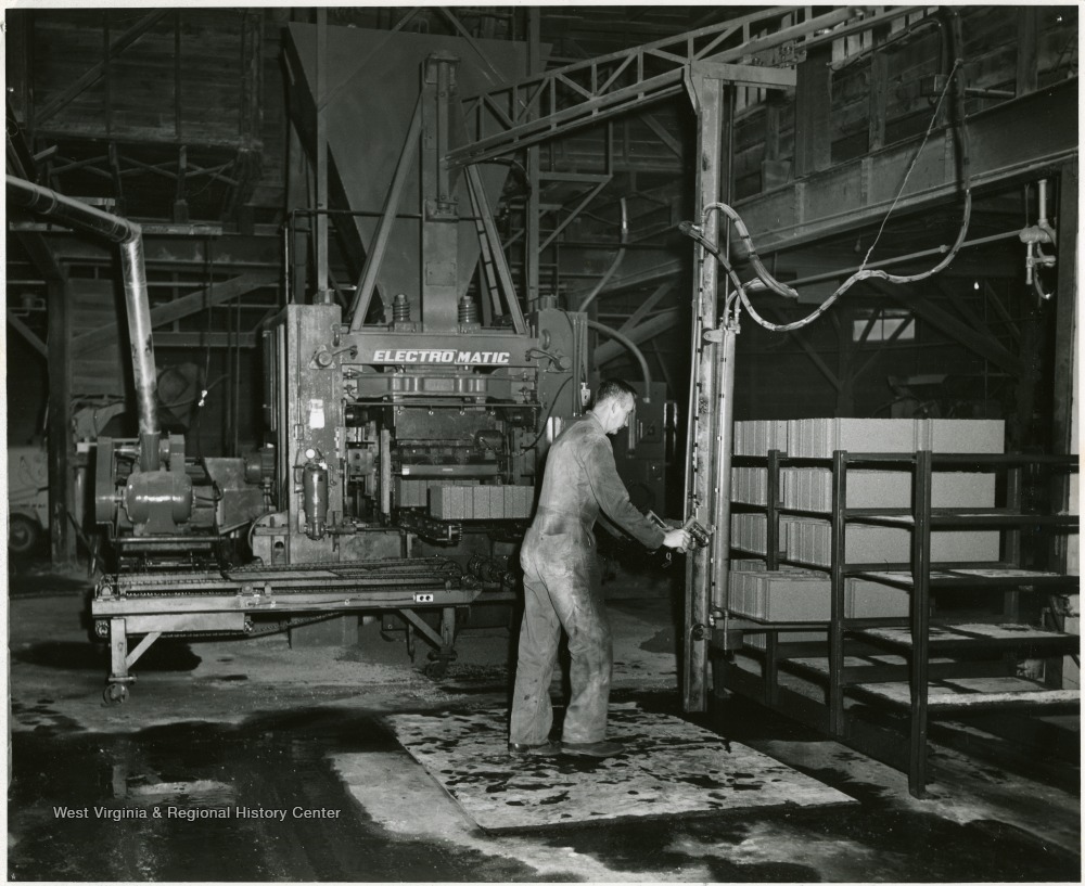 - Worker Robert Alhest at Houchins Blocks Plant, Skelton, W. Va.