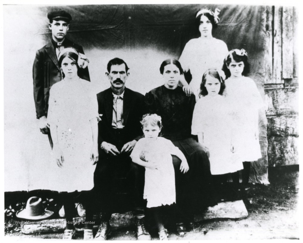 - Back Row: Dewey Spencer, Della Spencer Moore. Middle Row: Ona Spencer Props, Harry Spencer, Catherine Greathouse Spencer, Dolly Spencer Simmons, Eva Spencer Maxwell. Front: Grace Spencer Nichols.