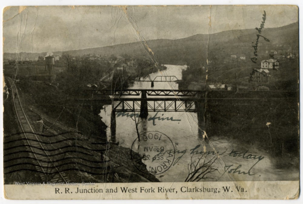 - Postcard with View of the Railroad Junction and West Fork River, Clarksburg, W. Va.