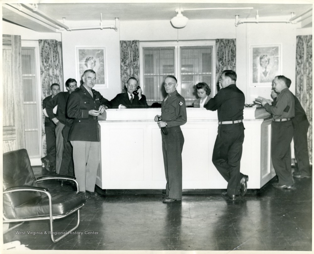 - Soldiers Await the Use of Telephones at a World War II Phone Bank