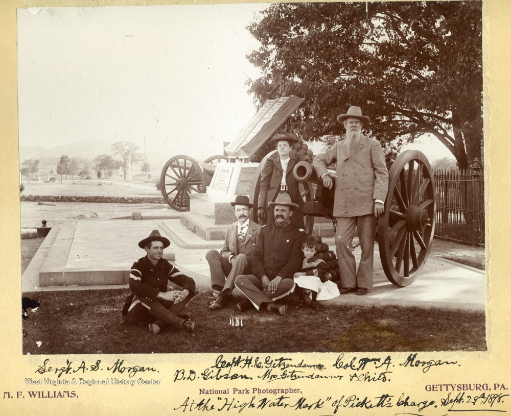 - Pictured around a cannon: U. S. Sergent A. S. Morgan; U. S. Captain H. C. Getzendanner; Former Confederate Colonel W. A. Morgan; B. D. Gibson; Mrs, Getzendanner; and unidentified small boy.