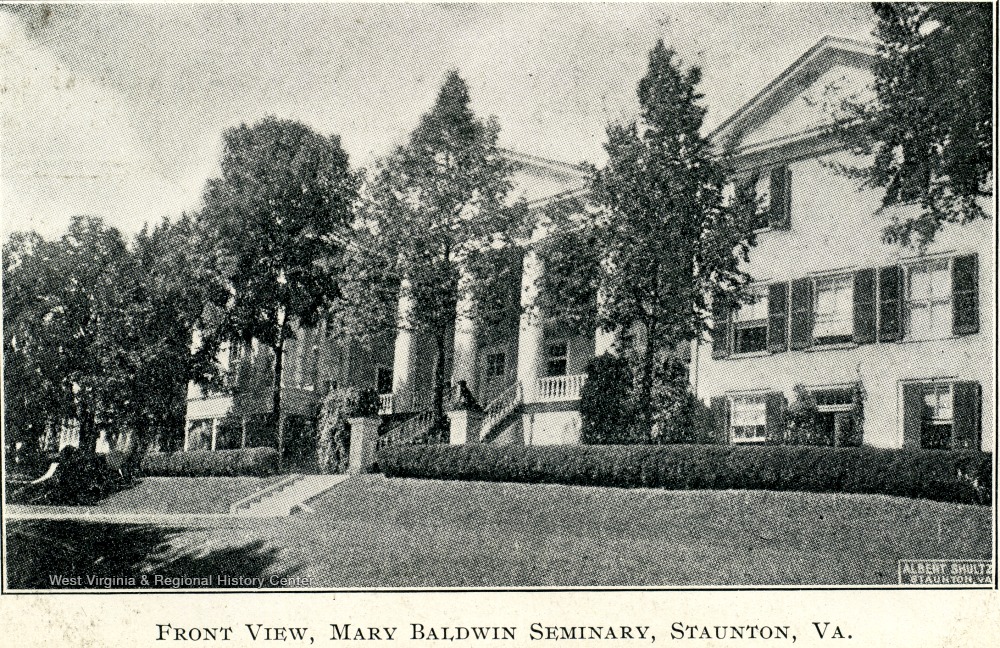 - Post card print of the front view of the Mary Baldwin Seminary, formally the Augusta Female Seminary.