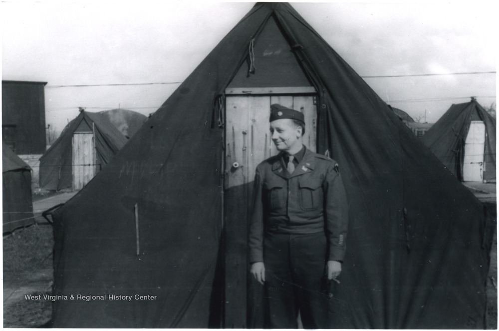 - United States Army Major Elmer Prince stands outside his two man tent in Camp Philip Morris. This "cigarette camp" could hold up to 35,000 men. In 1946, men in all camps were waiting for their number to be called to board a "Victory Ship" home. The port at Le Havre became known as the "Gateway to America".