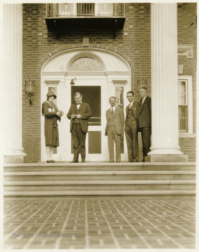 - WV Governor Howard Gore and unidentified persons standing on the front steps of the Governor's Mansion, Charleston, W. Va.