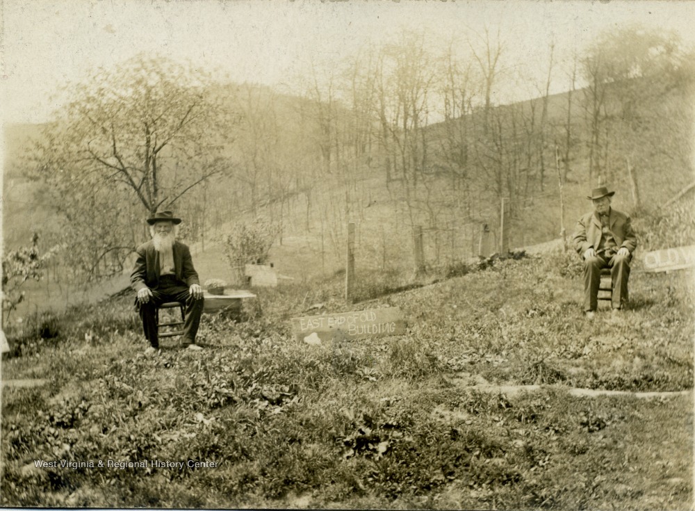 Alfred and James Breakiron Sit on Family Land Near Site of Old House, Monongalia County, W. Va.