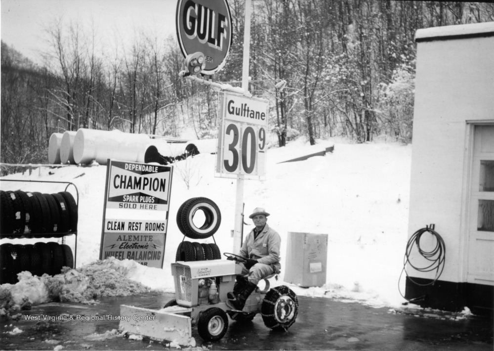 - Bud Toms Plows Snow at His Service Station Near Gassaway, W. Va.