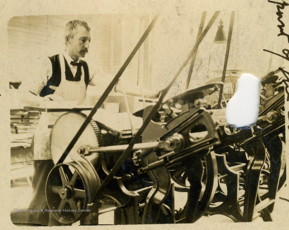 William H. Mathers Working at Printing Press