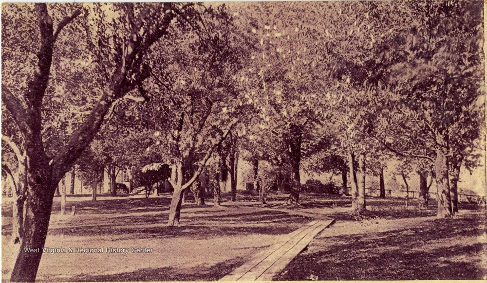 - Postcard photograph of Stonewall Jackson's Headquarters. Most of the building is obscured by trees. See back of the original image for correspondence.