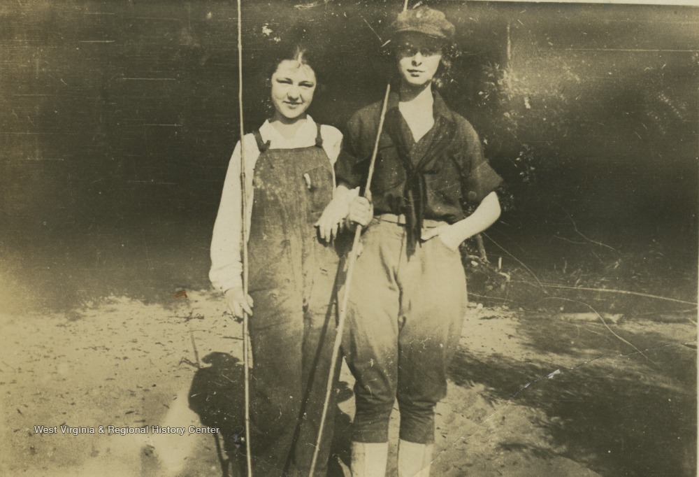 Portrait of two girls with fishing poles Wood County, W. Va.