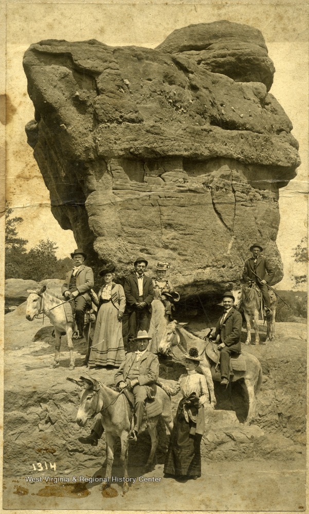 Donkey Riders and Unmounted Group at Balanced Rock Near Elkins, W. Va.