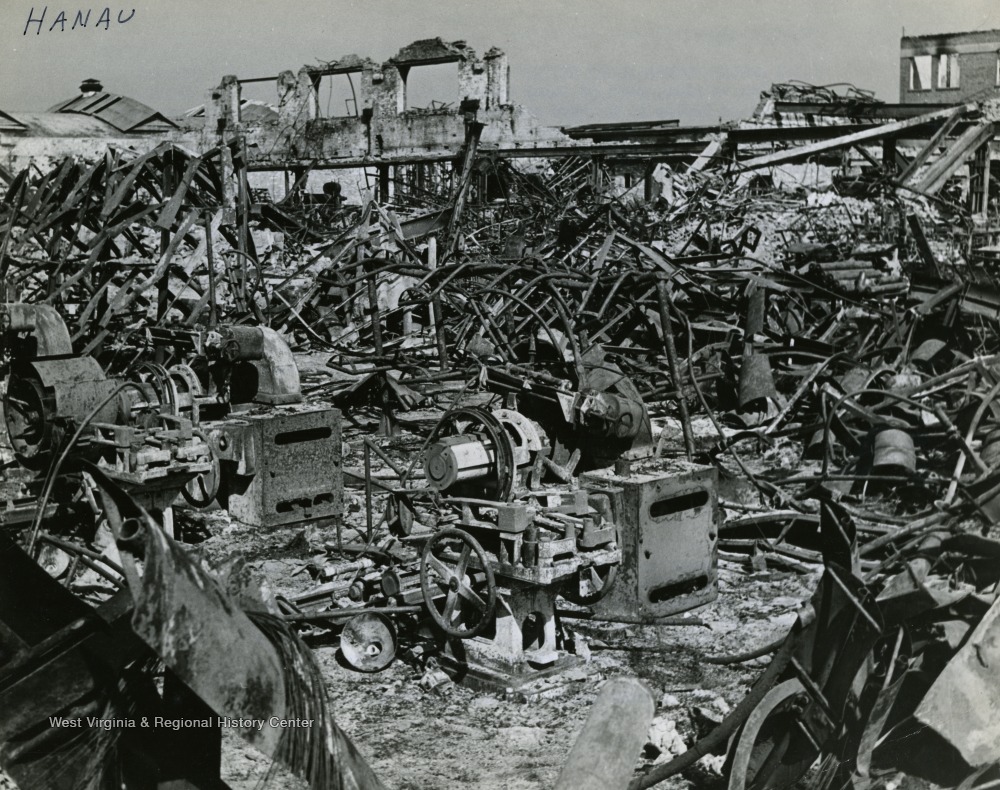 - Information included with the photograph,"Overall view showing the damage done by the RAF and the U.S. Eighth Air Force to the Deutsche Dunlop A.G. Tire and rubber factory at Hanau. The widespread destruction in this plant severely cut part of the German tire production for motor vehicles. This part of the plant ceased to produce after the last air attack that left it the mass of twisted girders and rubble shown." See the back of the original photograph for more information.