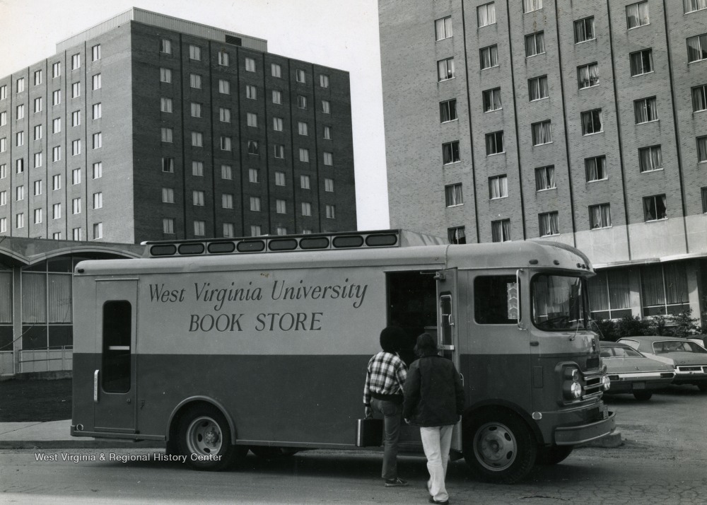 - Students Board a Bus Outside of Towers Dormitories, Morgantown, W. Va.