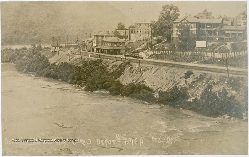 - The New River flowing pass the Chesapeake and Ohio Depot and the YMCA.