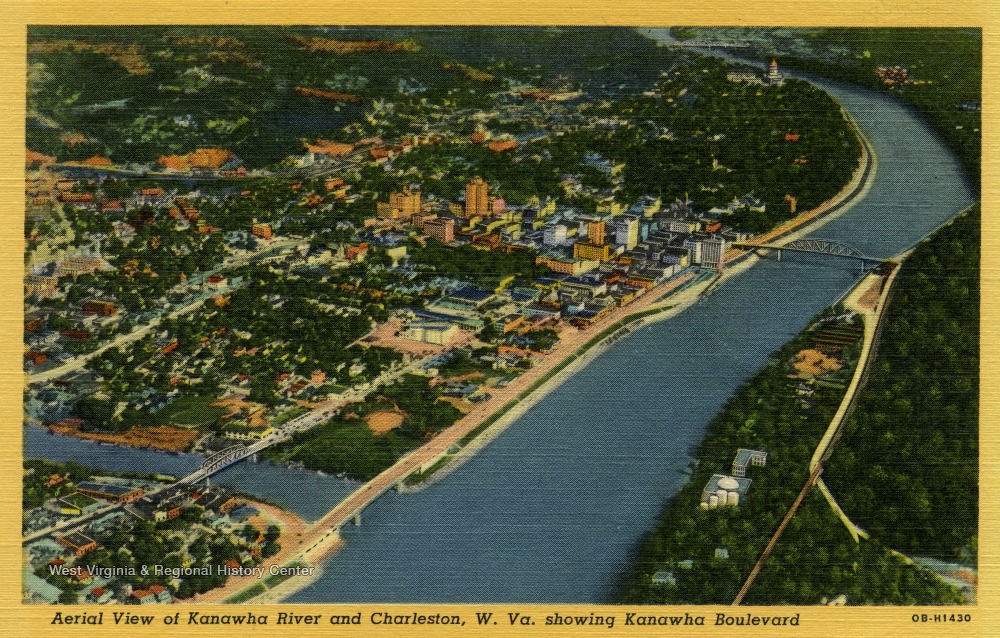 - Aerial View of Kanawha River and City, Showing Kanawha Boulevard, Charleston, W. Va.