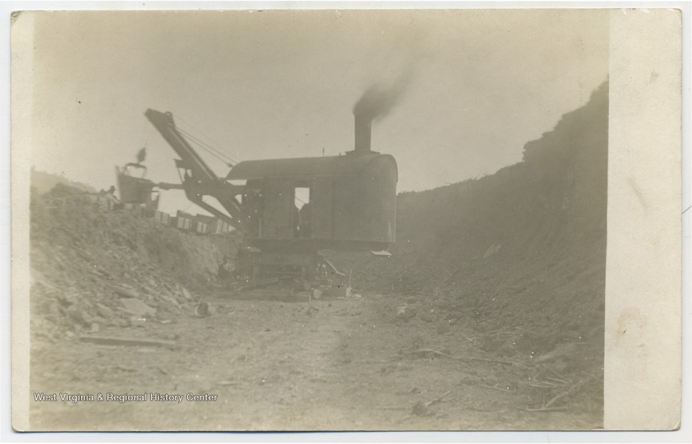 - Steam Shovel Loading Cars Opposite McElroy's Stable, Looking Up the River; Monongalia Co., W. Va.