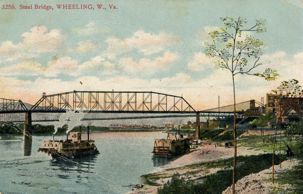 - Steamboat Travels Under Steel Bridge; Wheeling, W. Va.