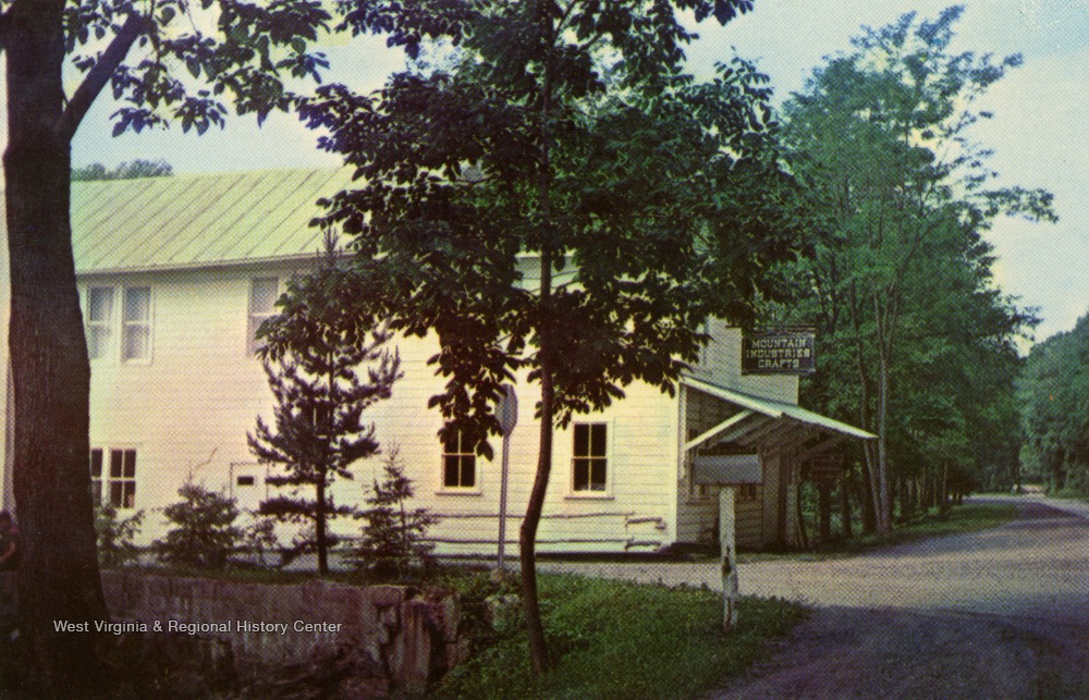 - Caption on back of postcard reads: "Located a half mile north of Harman, W. Va. is the home of Mountain Industries and Crafts. The Mill, operated by water power still produces stone ground meals." Published by General Post Card Company. (From postcard collection legacy system.)