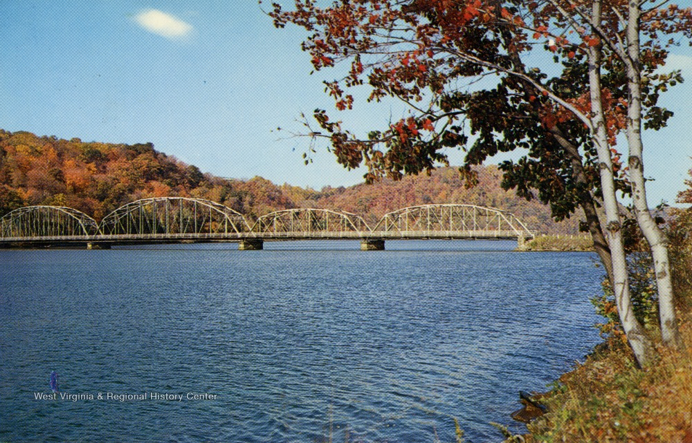 - Caption on back of postcard reads: "The highway crossing this bridge leads to beautiful Mont Chateau Lodge and scenic Coopers Rock State Park." Published by Valley News Agency Incorporated. (From postcard collection legacy system--subject.)