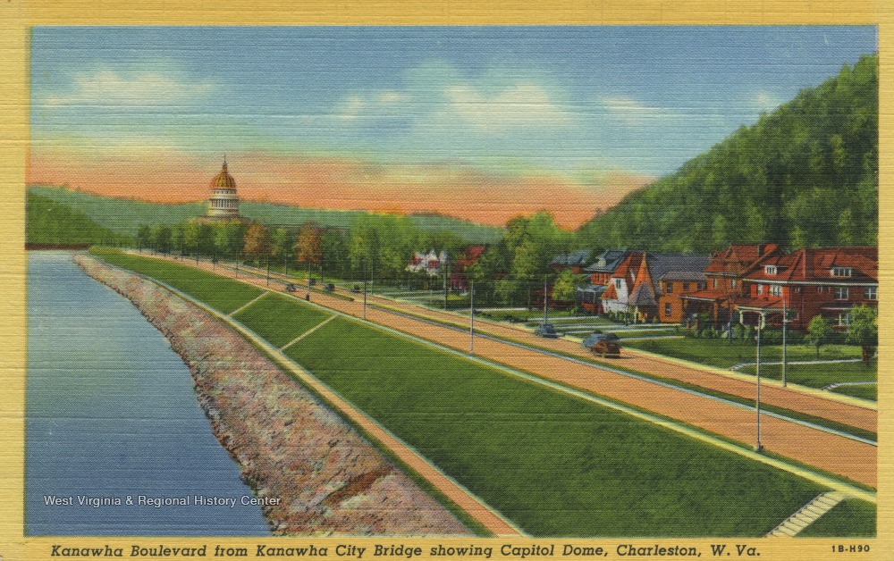 Kanawha Boulevard from Kanawha City Bridge Showing Capitol Dome, Charleston, W. Va.