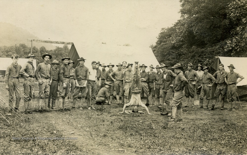 - W. Va. National Guard Soldier Standing on His Head While Others Surround Him