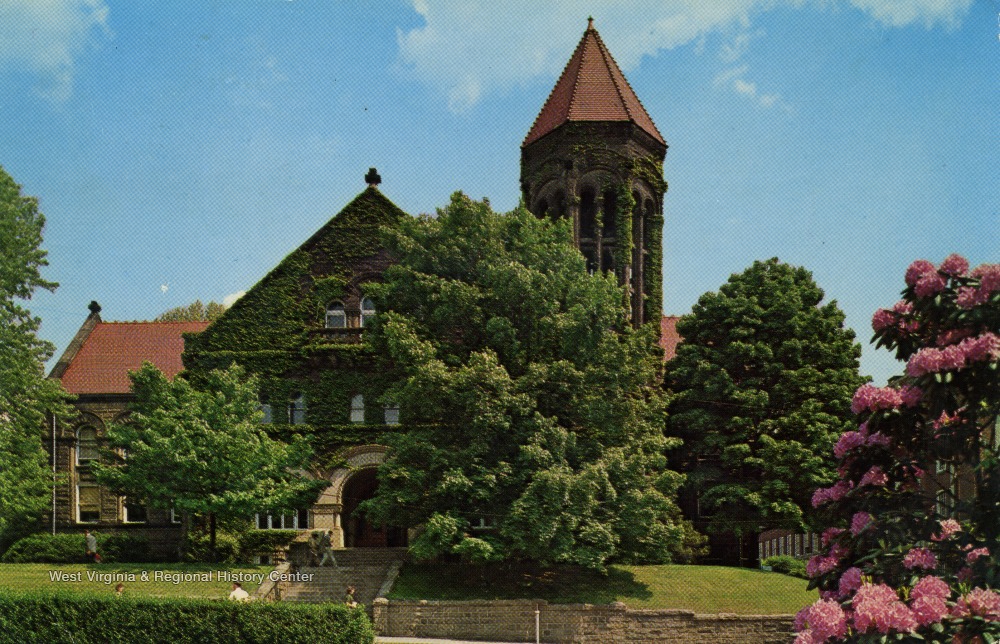 - Caption on back of postcard reads: "Built in 1902, this building was formerly the "old" library. It now houses the main administrative offices of the University." Building currently known as Stewart Hall. See original for correspondence. Published by Walter H. Miller and Company Incorporated. (From postcard collection legacy system--WVU.)