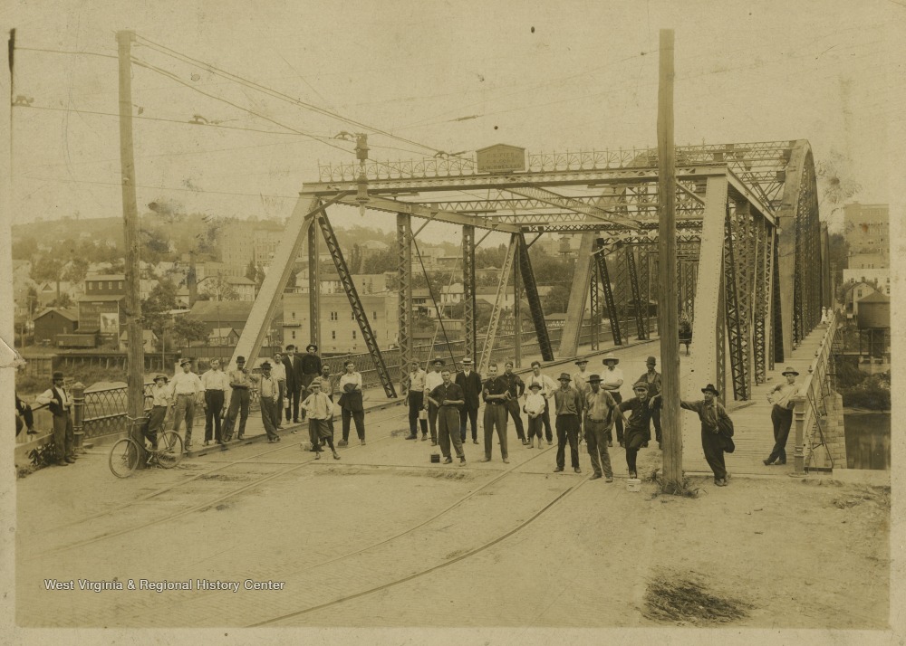 - Group of Men Posing on Westover Side of Bridge, Morgantown, W. Va.