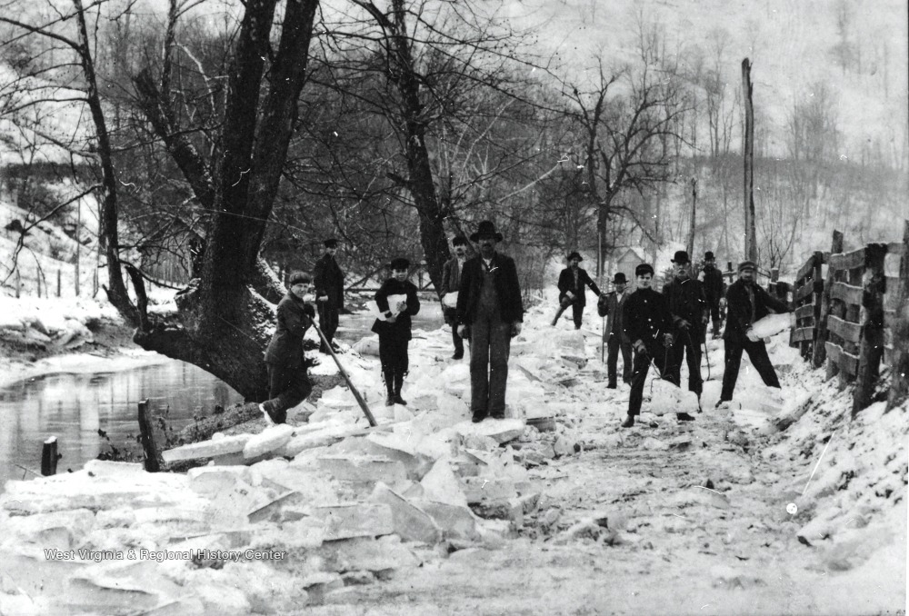 - Group of People Stand Next to Creek Holding Broken Chunks of Ice, Wyatt, W. Va.