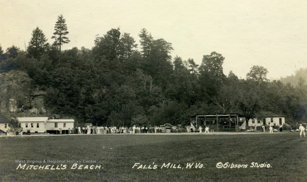 People Observe a Baseball Game at Mitchell's Beach, Fall's Mill, W. Va.