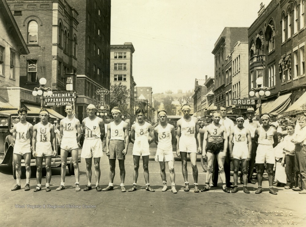 Track Runners on High Street at Corner of Pleasant Street, Morgantown, W. Va.
