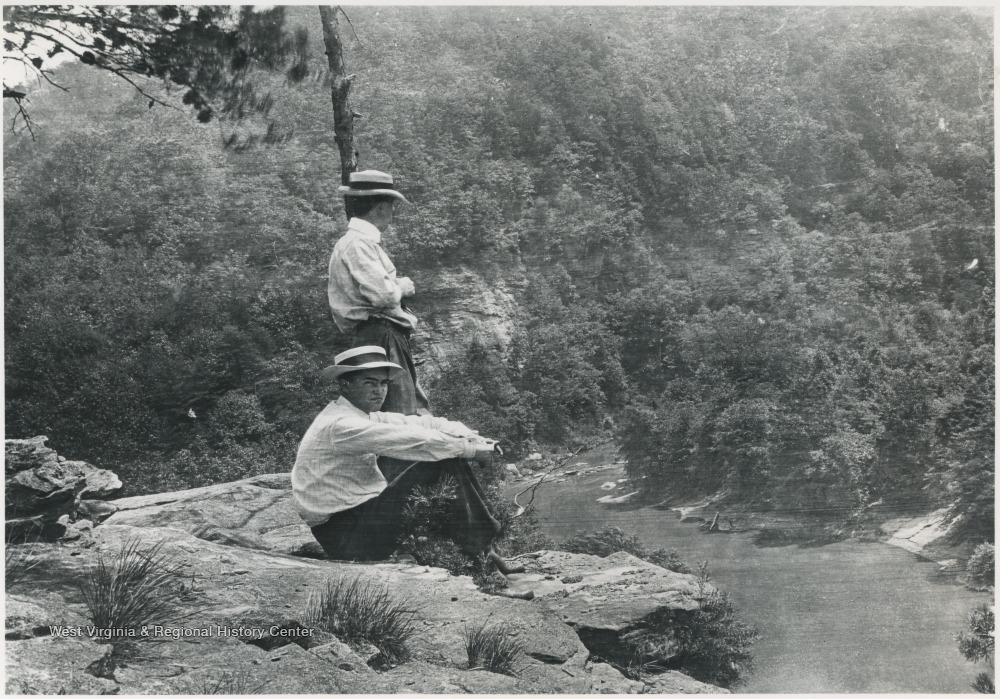 - View overlooking the Guyandotte River. The two boys pictured are unidentified.