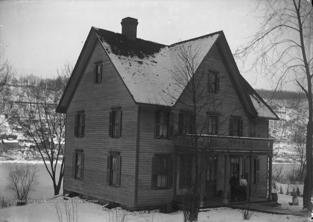 - Two People Stand on Porch of House Along the Allegheny River Surrounded in Snow, Foxburg, Pa.