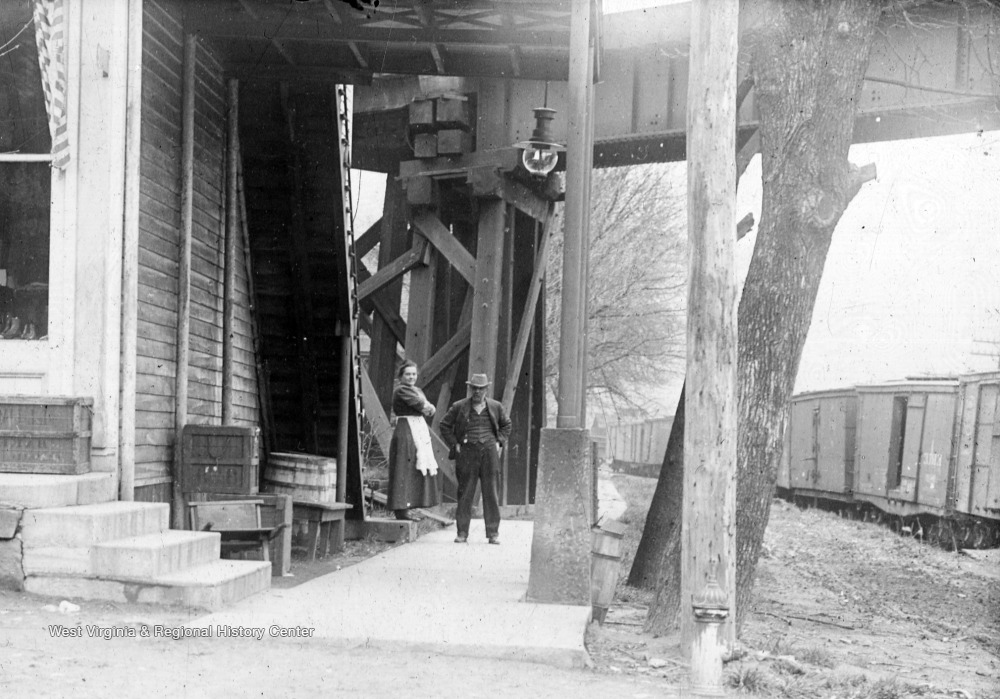 - Two People Outside of Store Next to Railroad, Foxburg, Pa.