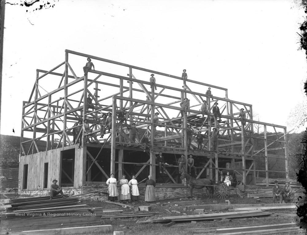 - Construction Workers Sit on Beams of Structure of New Building, North Central W. Va.