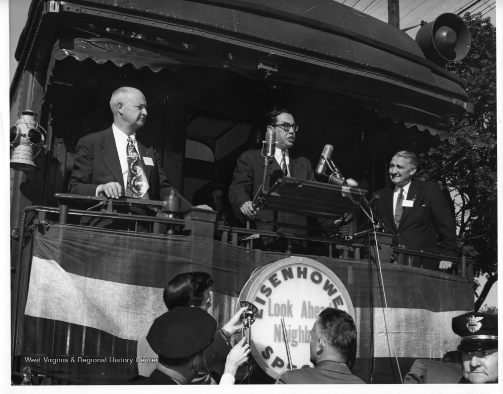 - Holt delivers a speech from the back of a train during his 1952 campaign for West Virginia Governor. The name of the train was the 'Eisenhower Special', after General Dwight D. Eisenhower who was running for president. Stamped on the back of the photo, ' Photographic Department Weirton Steel Co., Weirton, West Va.'.