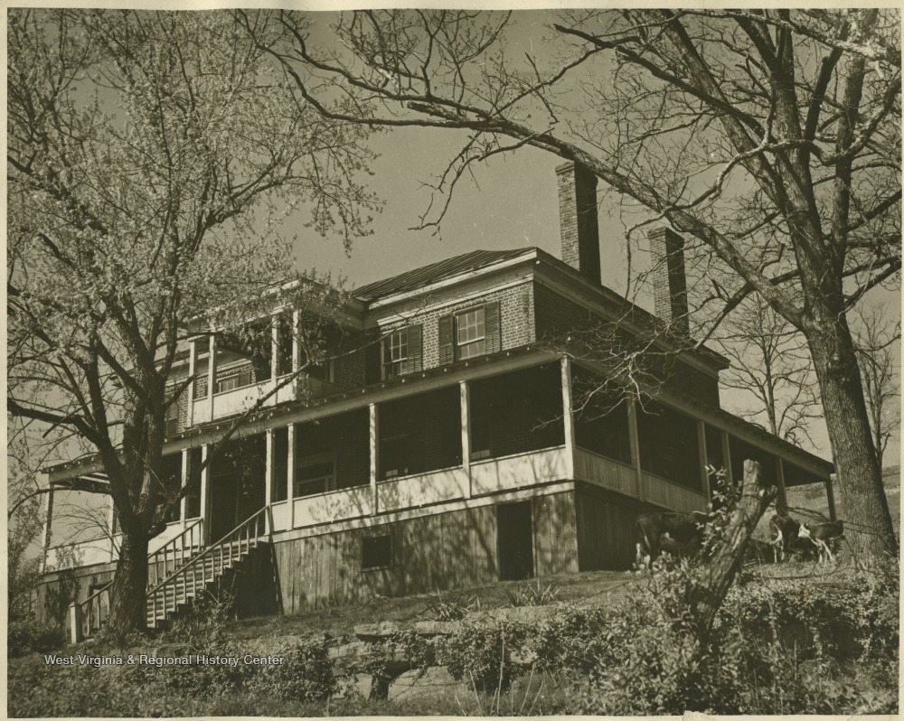 - Looking at the mansion located at the mouth of Indian Creek, on the north side of Old Forest Hill District. A few cows are pictured on the right of the house behind the trees.