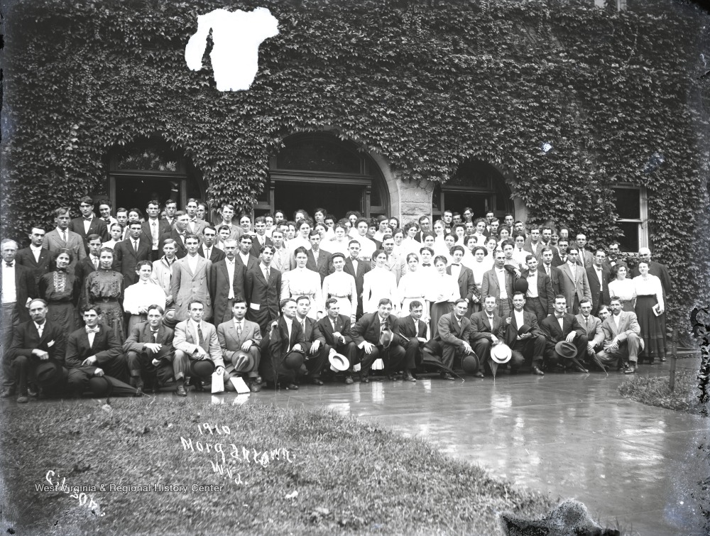 Unidentified Group Portrait Outside of Commencement Hall, Morgantown, W. Va.