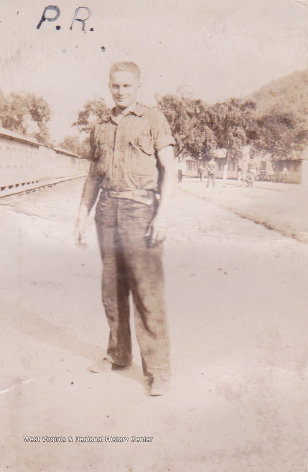 CCC Worker P.R. on Company Street at Camp Cranberry, Cowen, W. Va.