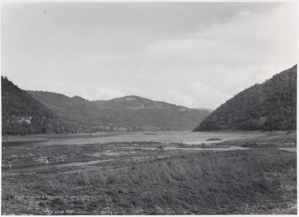 - Looking at the beginning of a reservoir created by the Bluestone Dam. To the right of the area pictured is the mouth of the Bluestone River.