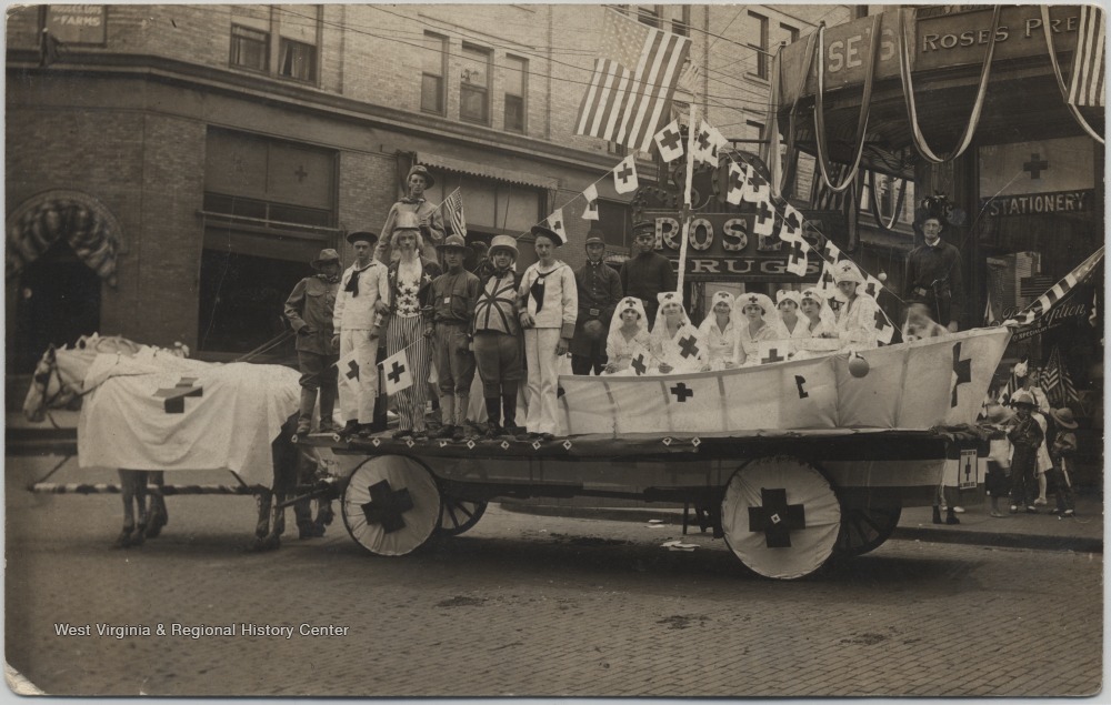 American Red Cross Parade Float in front of Rose's Drug Store, Hinton, W. Va.