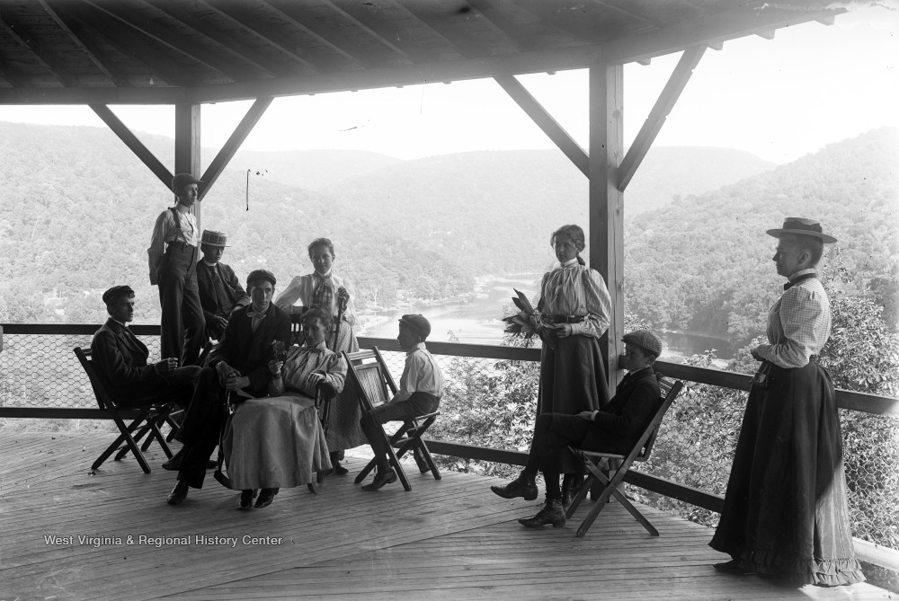 - Group on Porch Overlooking what is Possibly Cheat River, W. Va.