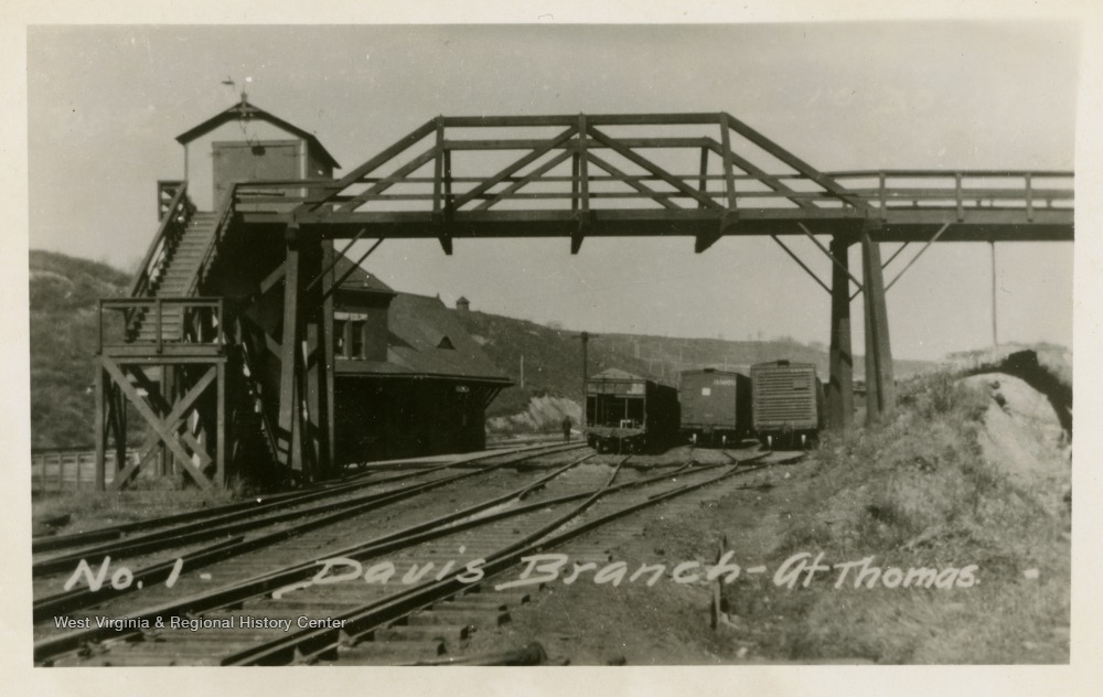 - This image is part of the Thompson Family of Canaan Valley Collection. The Thompson family played a large role in the timber industry of Tucker County during the 1800s, and later prospered as farmers, business owners, and prominent members of the Canaan Valley community.View of trains and bridge at Thomas, W. Va.