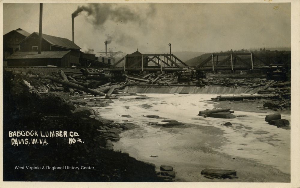- This image is part of the Thompson Family of Canaan Valley Collection. The Thompson family played a large role in the timber industry of Tucker County during the 1800s, and later prospered in the region as farmers, business owners, and prominent members of the Canaan Valley community.View of logs in river near Babcock Lumber Company in Davis, W. Va.