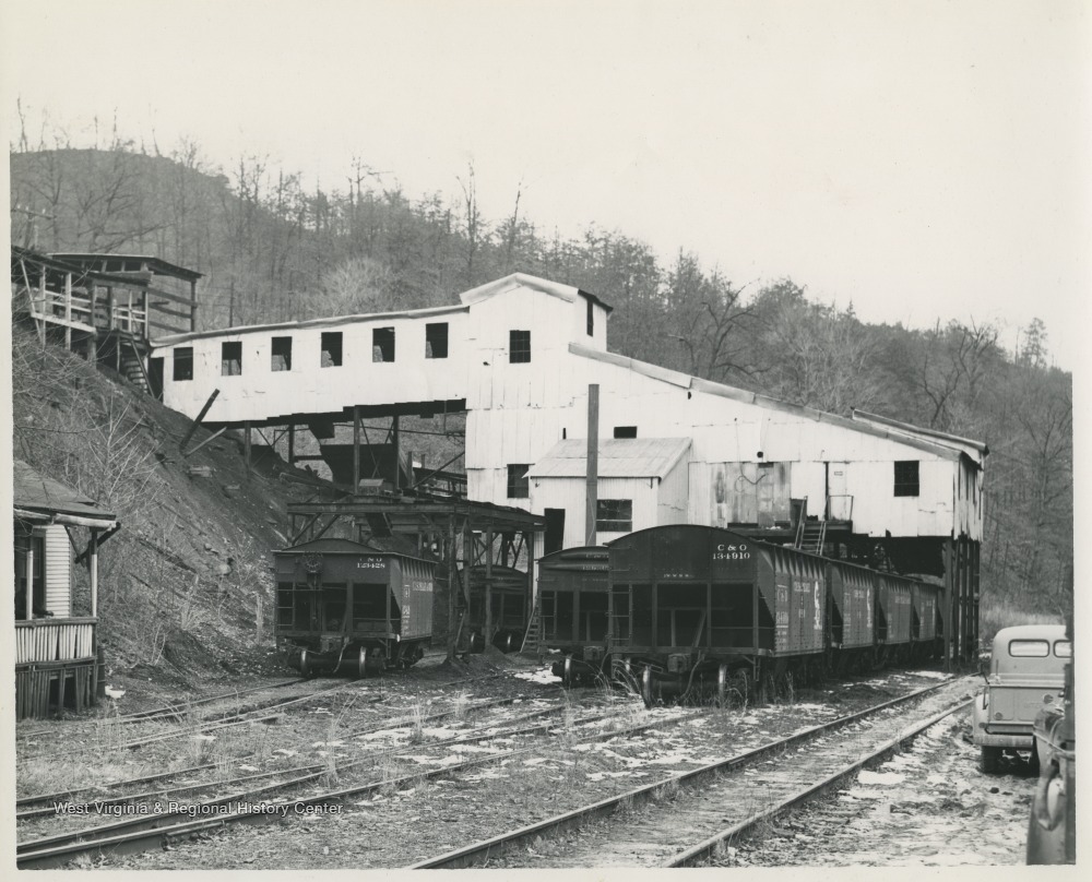 - C. & O. Railway cars sit against the building, likely prepared to transport coal.